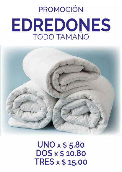 Nuestra popular y tradicional promoción: tus edredones (de cualquier tamaño) lavados, secados y empacados en solo tres horas. Exquisitamente limpios